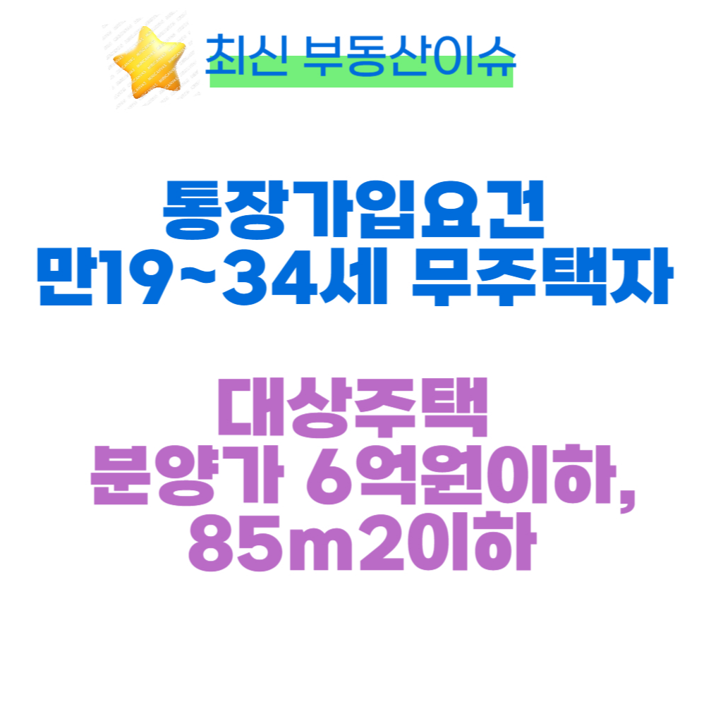 청년들의 주거 안정이라는 슬로건을 내 걸고 정부에서 만든 청약통장인데요. 처음에 가입요건은 연소득 3,600만원 이하였지만 최근에 5,000만원 이하로 완화되었습니다. 그리고 무주택 세대주만 가입이 되었는데요. 지금은 세대주가 꼭 아니어도 무주택자이면 가입이 될 수 있게 조건이 완화되었습니다. 그래서 대상자가 더 늘어나게 되었습니다.