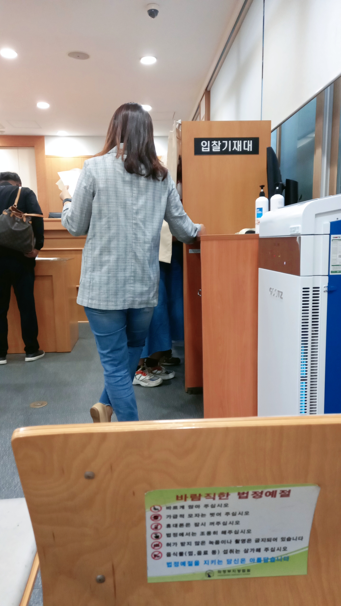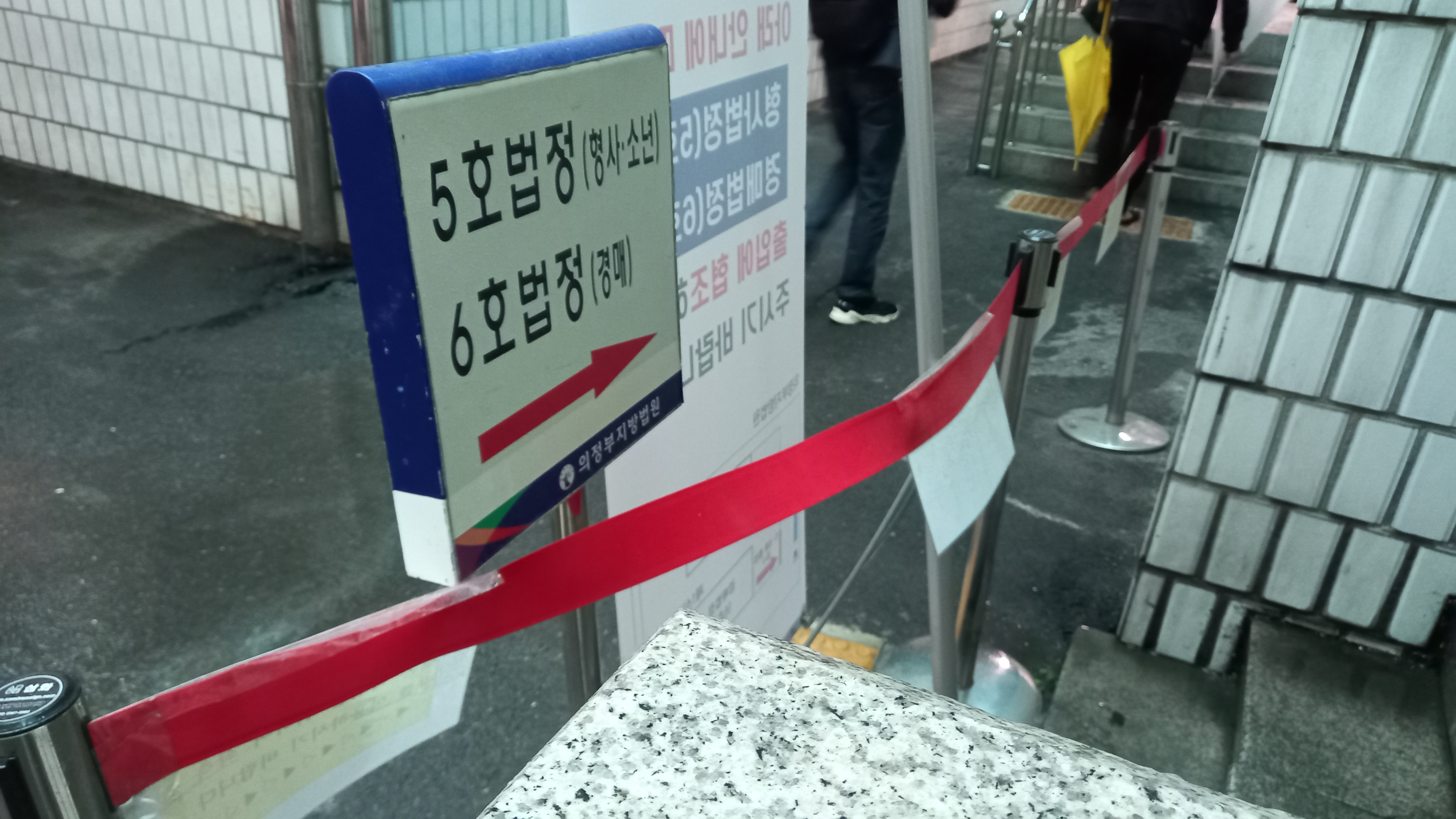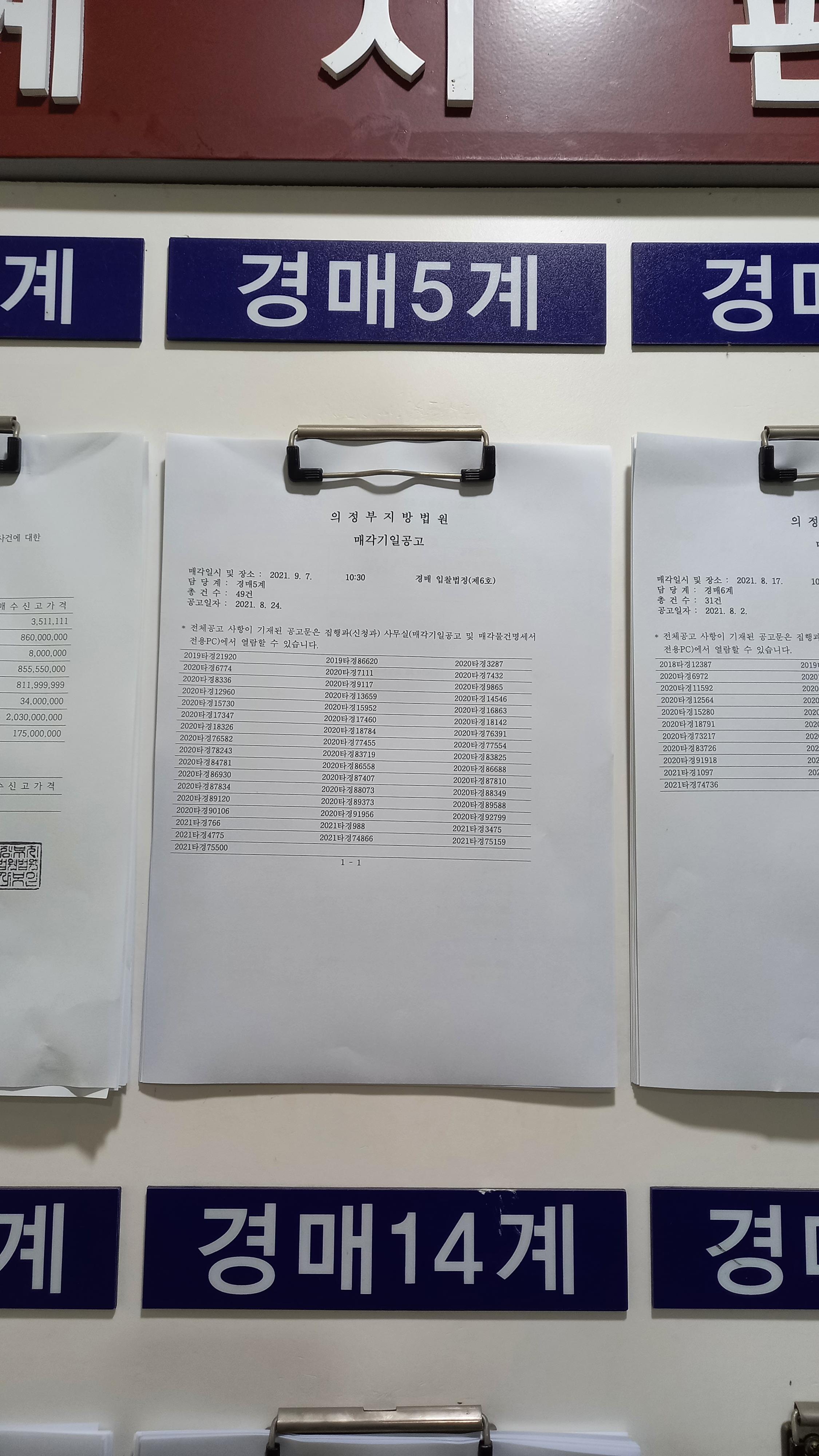 의정부 지방법원 4층 경매과로 가보니 신관 1층 6호 법정으로 가라고 게시되어 있더군요. 오늘 내가 입찰한 물건이 변동사항이 있는지 확인해보고 신관 1층으로 갑니다. 비가 오는 날이었는대도 싸게 경매로 낙찰받고 싶어 하는 분들이 많이 방문했습니다.